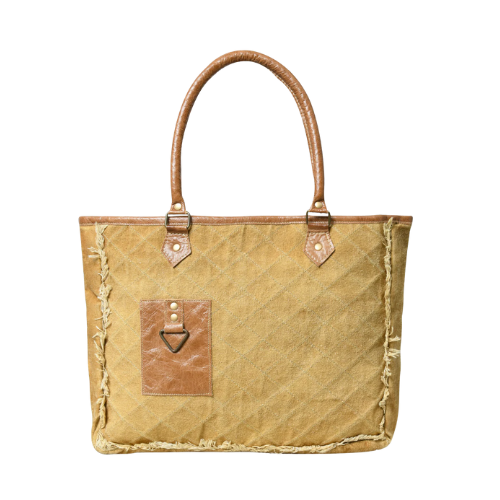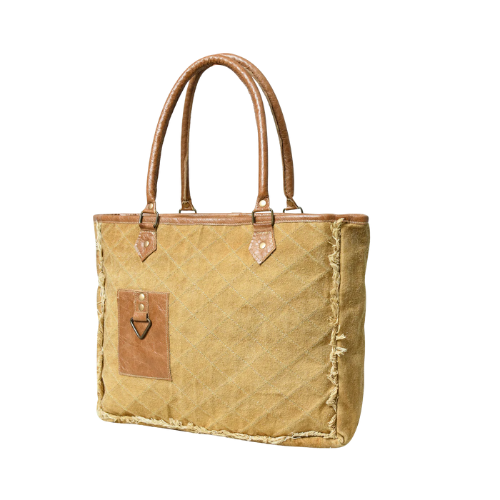 Covitte Vintage Charm Frayed Canvas Tote – Mustard Tan